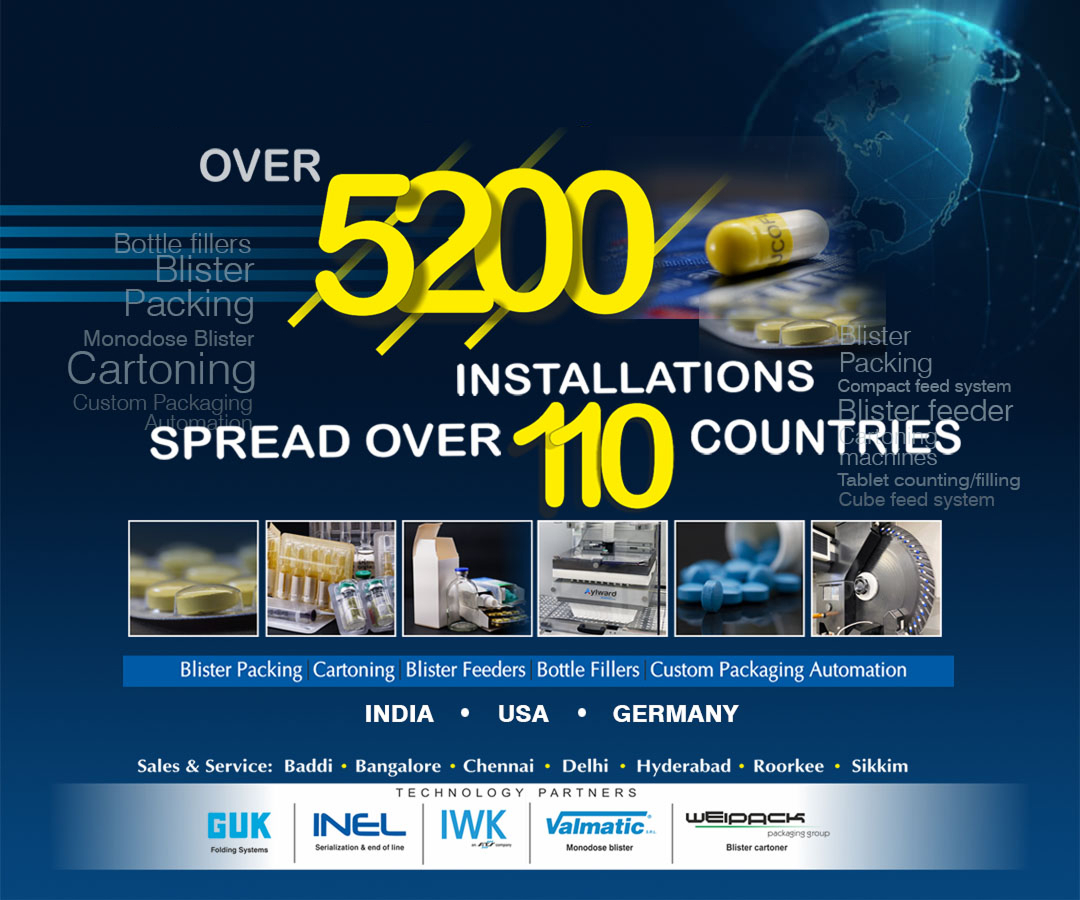 Starting operations with blister pack machines in 1988, at Mumbai, ELMACH holds a market share of more than 4800 blister pack machines installed in over 106 countries worldwide. This customer data speaks volumes for the quality and reliability of ELMACH machines. The key element of ELMACH machines has always been its user-friendly operation.