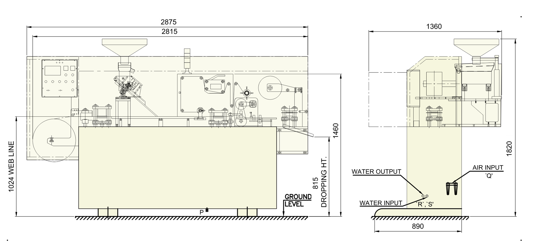 | COOLING WATER REQUIREMENT | 120 LITERS / HOUR at 14 C (BASE FILM DEPENDENT) |